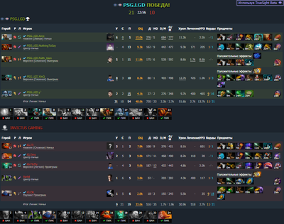PSG.LGD в первом матче плей-офф обыграли кризисных Invictus Gaming со счетом 2:0. Еще пару месяцев назад такой результат можно было бы назвать отличным, но сейчас IG привыкли к поражениям с таким счетом. Матч выдался скучным и односторонним. Отмечу только отсутствие убийств у NothingToSay на второй карте, где он отыграл на Ember Spirit.